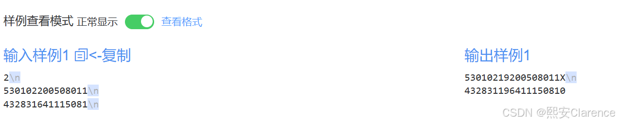本题IO模式为标准输入/输出(Standard IO),你需要从标准输入流中读入数据,并将答案输出至标准输出流中。