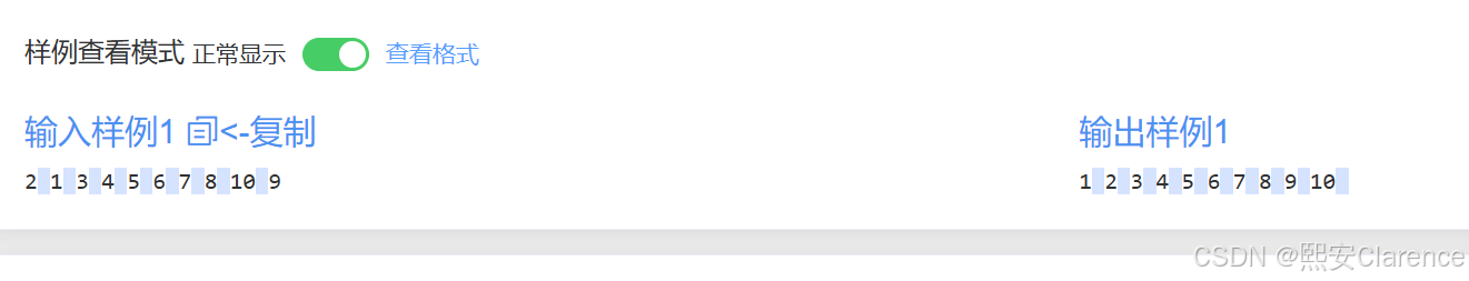 整理后的十个数,每个数后跟一个空格(注意最后一个数后也有空格)