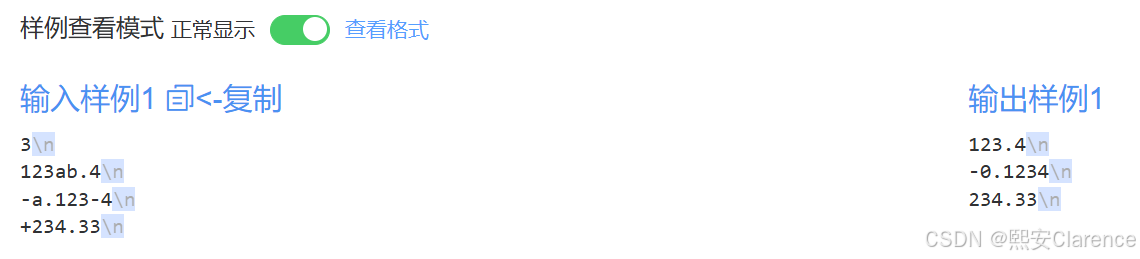 输入是若干行字符串,它们都包含不超过10个的字符,而且包含的实数不会超出double类型的表示范围。