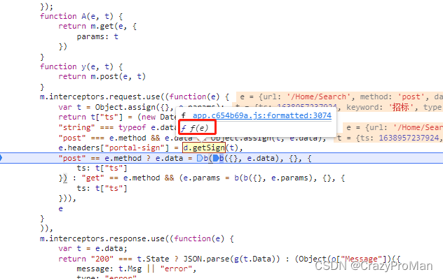 我们继续跟进getSign函数,返现调用的是f(e)函数: