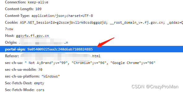 请求的Header头信息中,有个portal-sign参数,每次请求都不一样,返回的结果也是经过加密的: