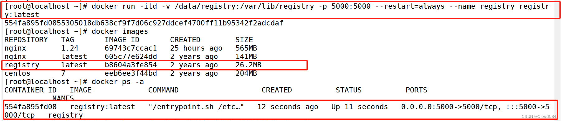 docker run -itd -v /data/registry:/var/lib/registry -p 5000:5000 --restart=always --name registry registry:latest
