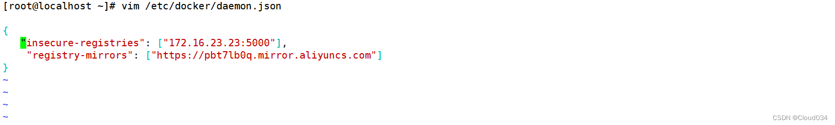 "insecure-registries": ["172.16.23.23:5000"], #添加,注意用逗号结尾