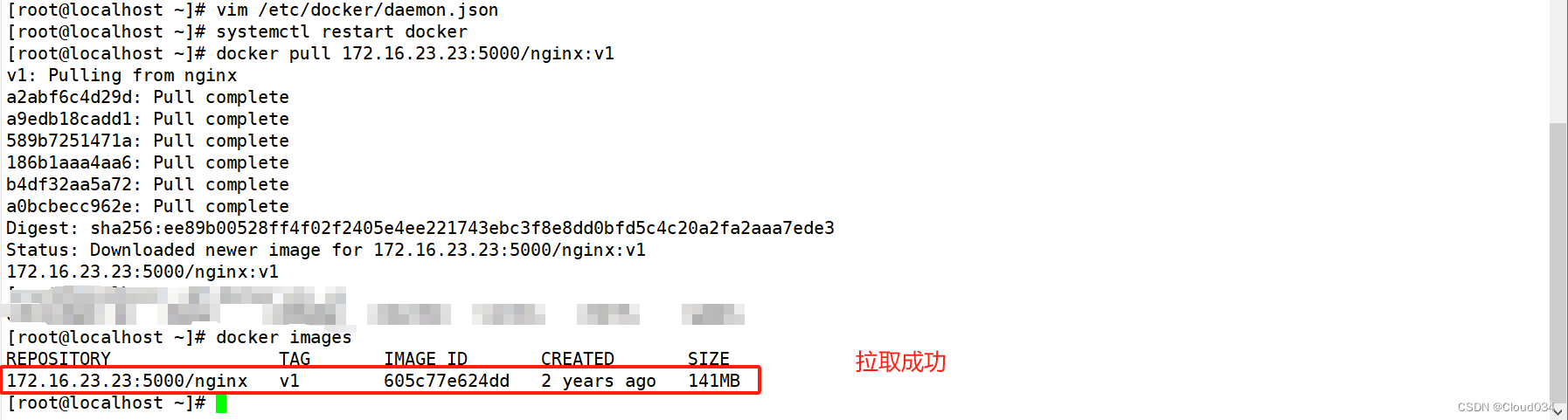 docker pull 172.16.23.23:5000/nginx:v1 #拉取镜像