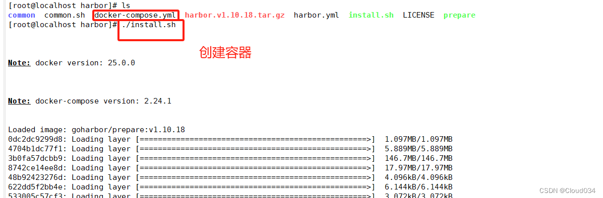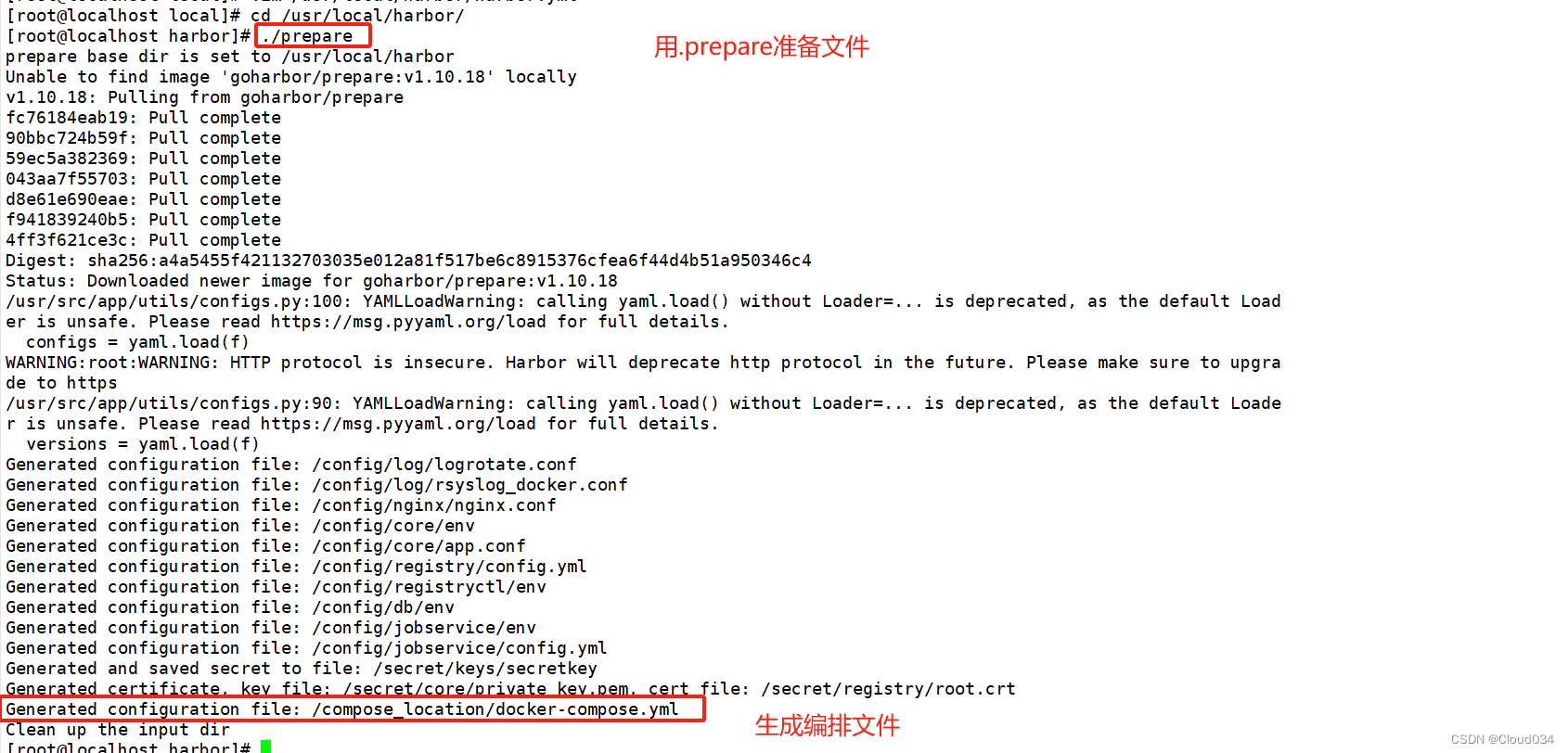 执行 ./prepare 命令,为 harbor 启动的容器生成一些必要的文件(环境)
