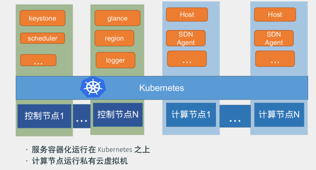 若要使用私用云这个功能,则还需要一些计算节点,计算节点上会跑虚拟化相关的软件,提供私有云虚拟化的功能,总结来说就是计算节点运行私有云的虚拟机。