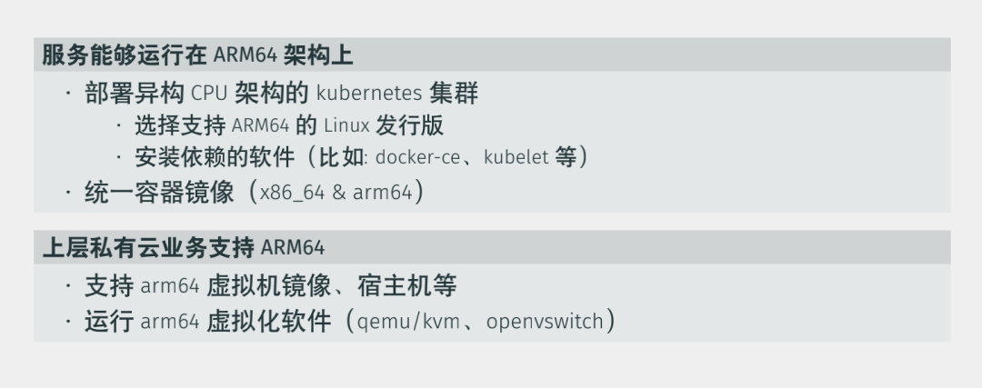还有一方面是因为我们内置了一个私有云,上层的私有云业务如何支持64位的ARM架构?