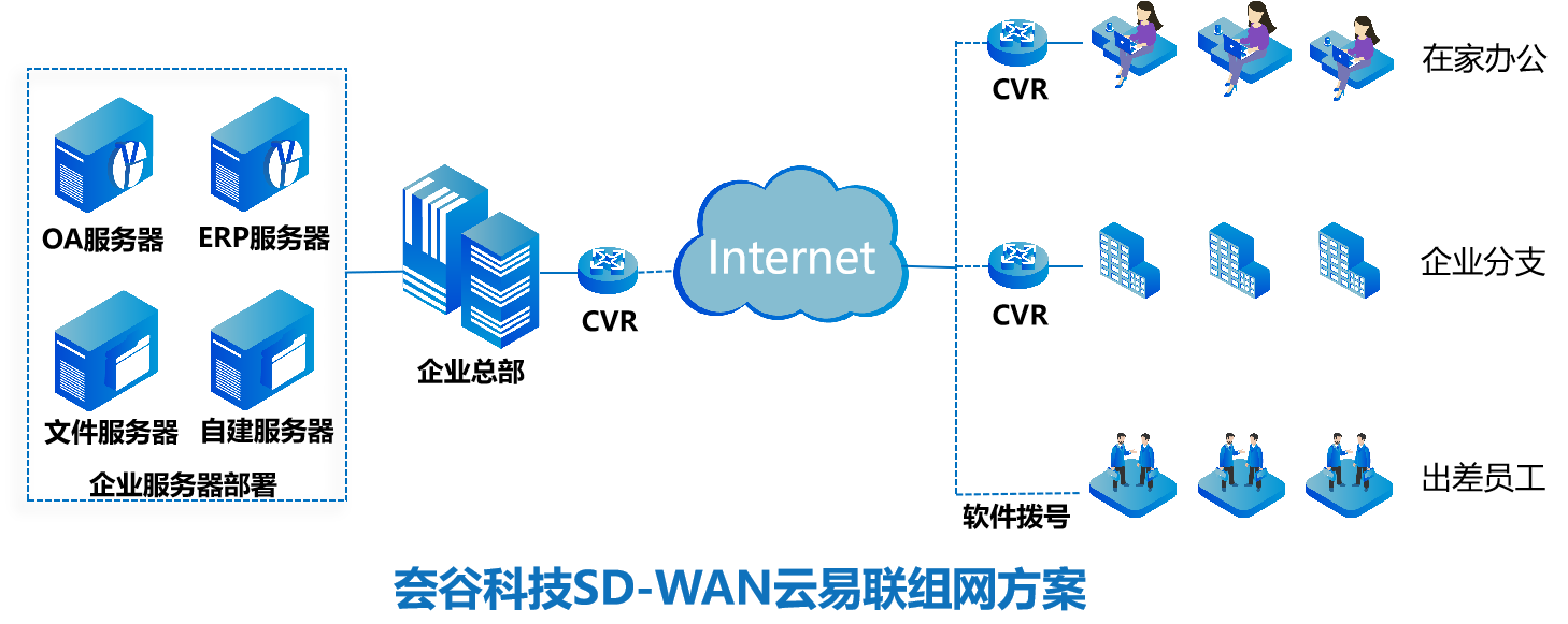 1、支持混合链路接入:提供替代传统广域网路由器的轻量级方案,终端支持以软硬多种形态在分支机构部署并且无缝支持多种主流传输协议与链路(包括MPLS,Internet,4G/LTE等等)。