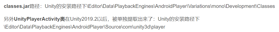1.关于unity的calsses.jar和UnityPlayerActivity.java
