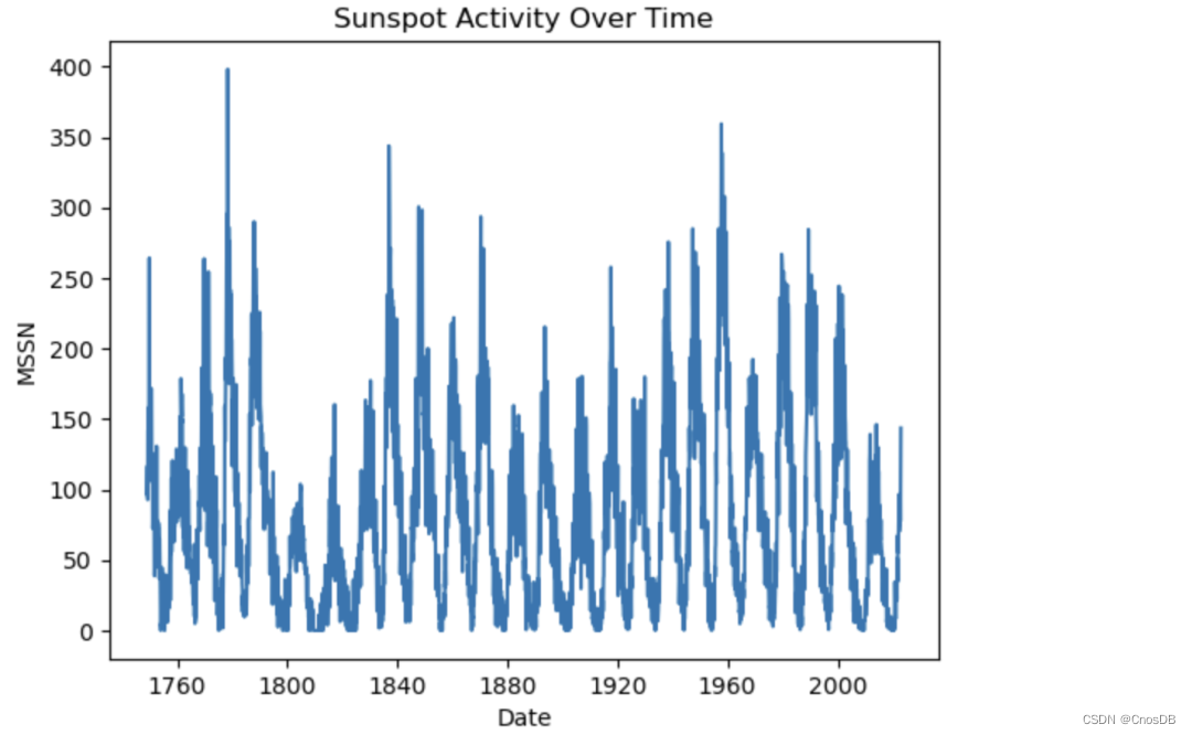 因此,本文将介绍如何使用时序数据库 CnosDB 存储太阳黑子变化数据,并进一步使用TensorFlow实现1DConv+LSTM 网络来预测太阳黑子数量变化。
