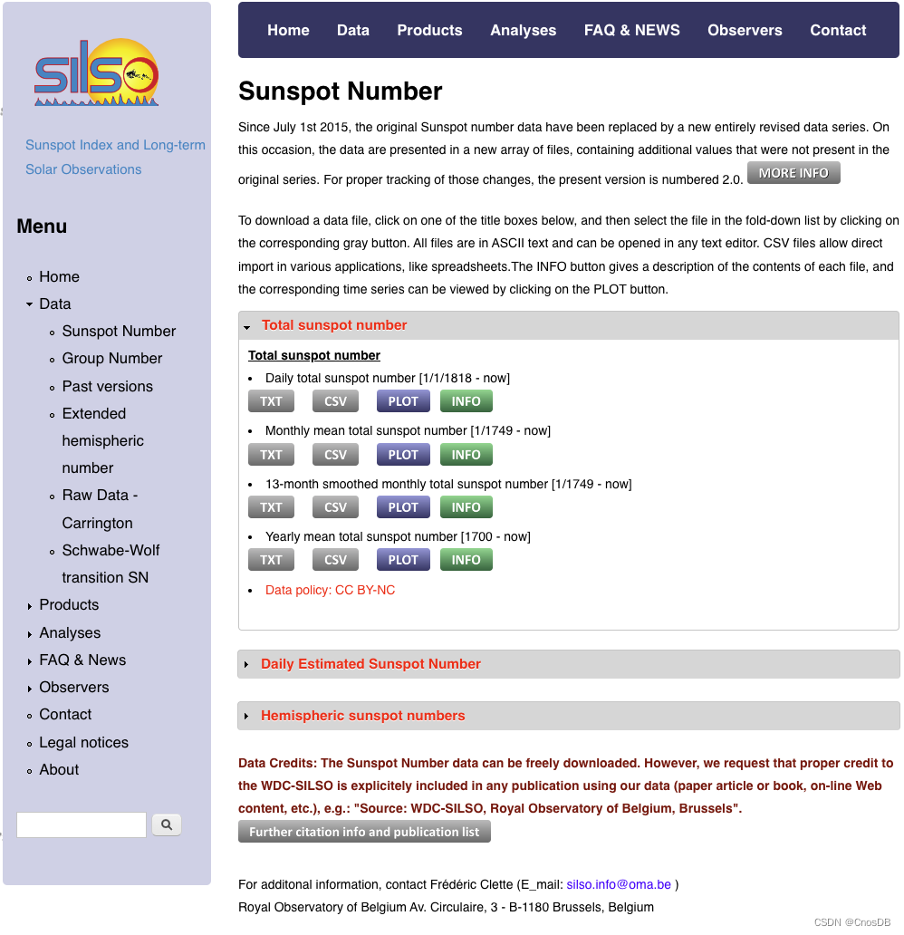 将 MSSN 数据 csv 格式文件 SN_m_tot_V2.0.csv (https://www.sidc.be/silso/infosnmtot) 下载到本地。