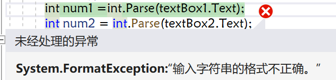 但是Parse方法需要注意:要转换的字符串必须是纯数字类型字符串否则转换会报错