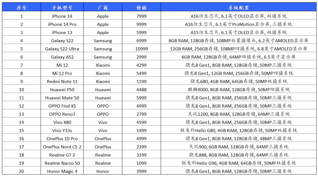 2. 如果 “手机列表” 中没有相关数据,请直接回答:“抱歉,我没有找到相关的手机信息。”