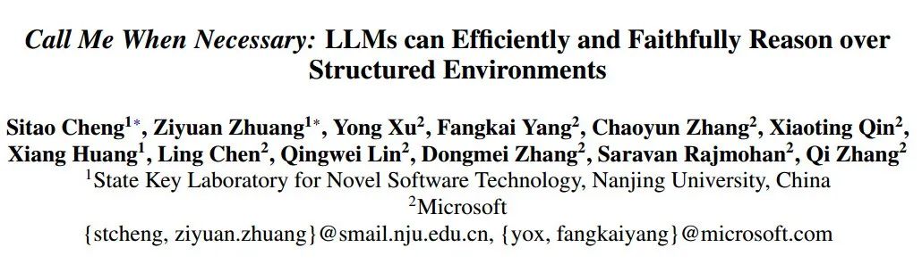 论文题目: Call Me When Necessary: LLMs can Efficiently and Faithfully Reason over Structured Environments。