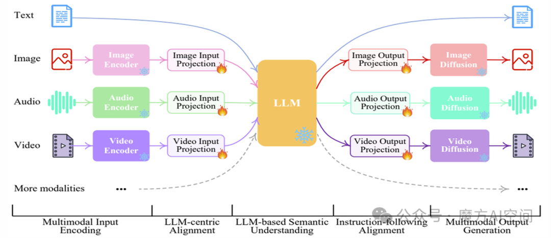 未来,多模态有望实现any to any模态的输入和输出,包括文本、图像、音频、视频、3D模型等多种模态。