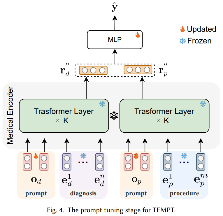 值得注意的是,提示微调的时候只微调最后的MLP层和提示向量的参数,而medical encoder的参数都是固定不动的,从而更好地保留了学习到的通用医疗知识。