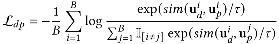 然后我们设计了基于batch的对比学习方式。即一个batch内,对应位置的诊断和治疗表征为一对正样本,batch内其他对应位置均为负样本。然后,我们就可以得到对比学习任务的损失函数如下: