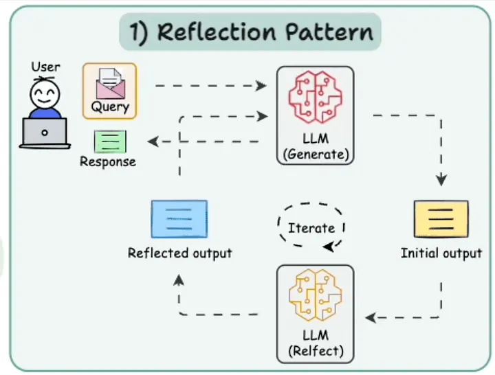它是什么: 反思模式让 AI 能够审视自己的工作,发现错误并进行改进。就像 AI 在提交论文前检查其中的错误一样。