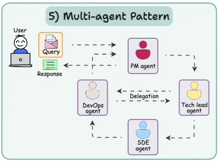 这些模式为智能体的协同提供了结构化方案,文中还包含使用 AutoGen 等工具实现这些模式的案例。