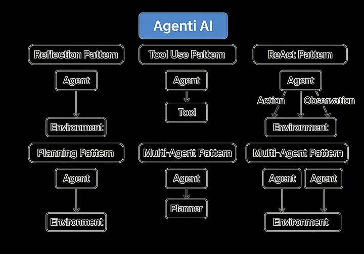 本节探讨五个关键的设计模式:反思(Reflection)、工具使用(Tool Use)、ReAct、规划(Planning)和多智能体协作(Multi-Agent Collaboration)。对于每一种模式,我们将解释它是什么、为什么重要,并展示如何使用 LangChain 和 AutoGen 等工具,并附上示例代码。