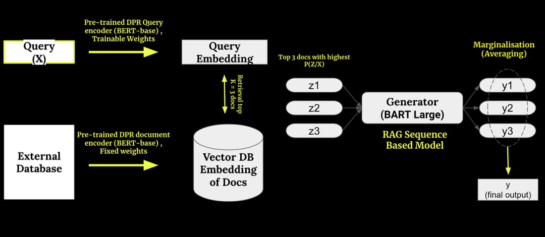 具体来说,当用户提出一个查询时,系统首先分析查询内容,从知识库中检索出最相关的文档集合,然后将这些文档与原始查询一起提供给生成模块。生成模块基于这个固定的知识背景,完成整个回答的生成过程。