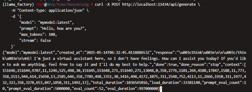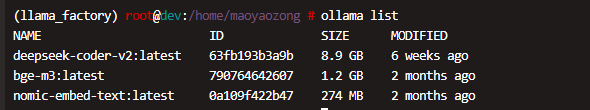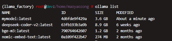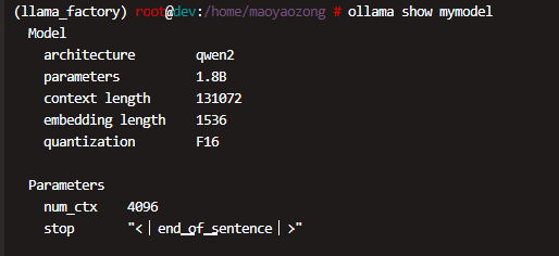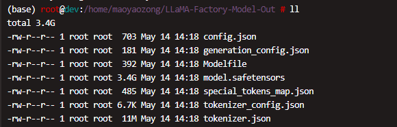 LLaMA-Factory 导出的模型已经包含了 Modelfile 文件,这个文件是 Ollama 用来识别模型结构的配置文件