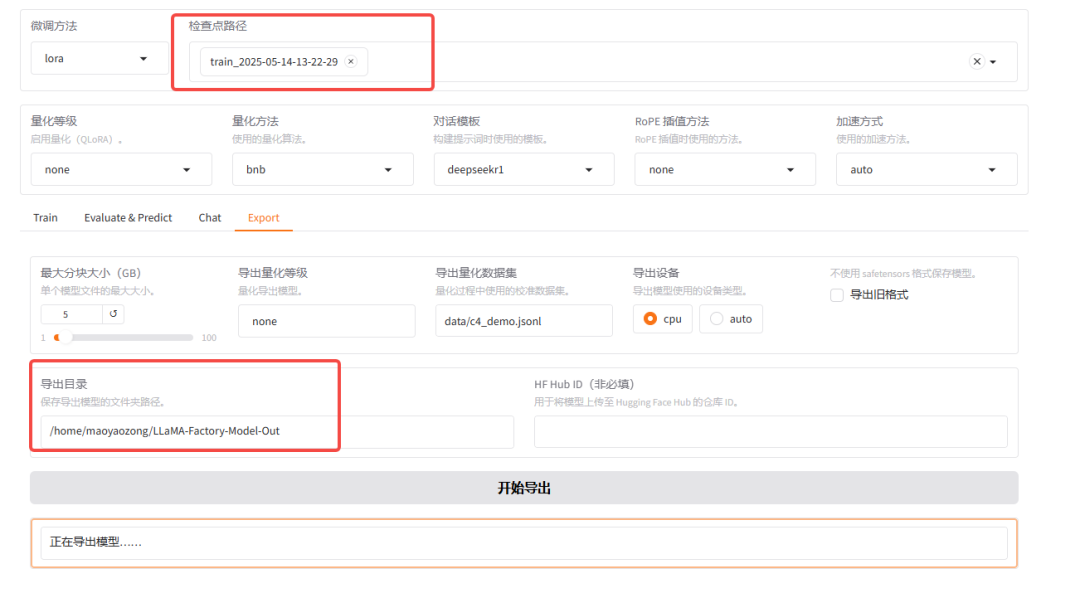 - 将模型导出到 LLaMA-Factory-Model-Out