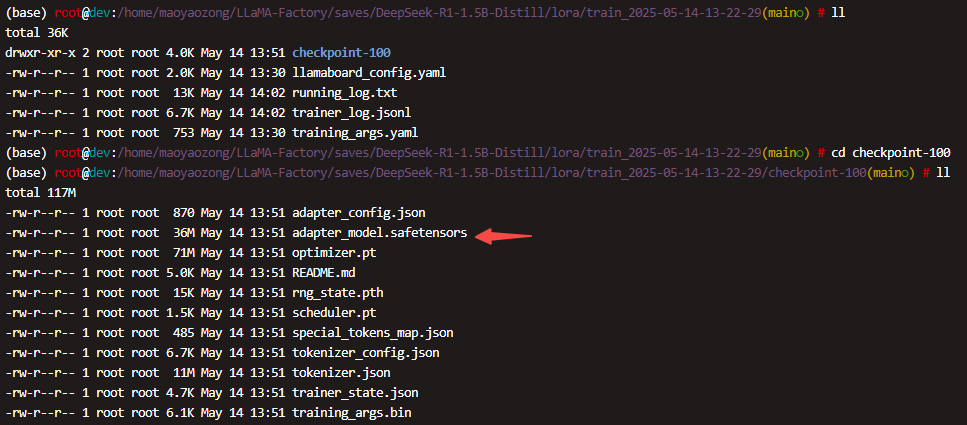 - 训练完成后,在checkpoint目录下面, 有一个adapter_model.safetensors 这个就是lora 模型