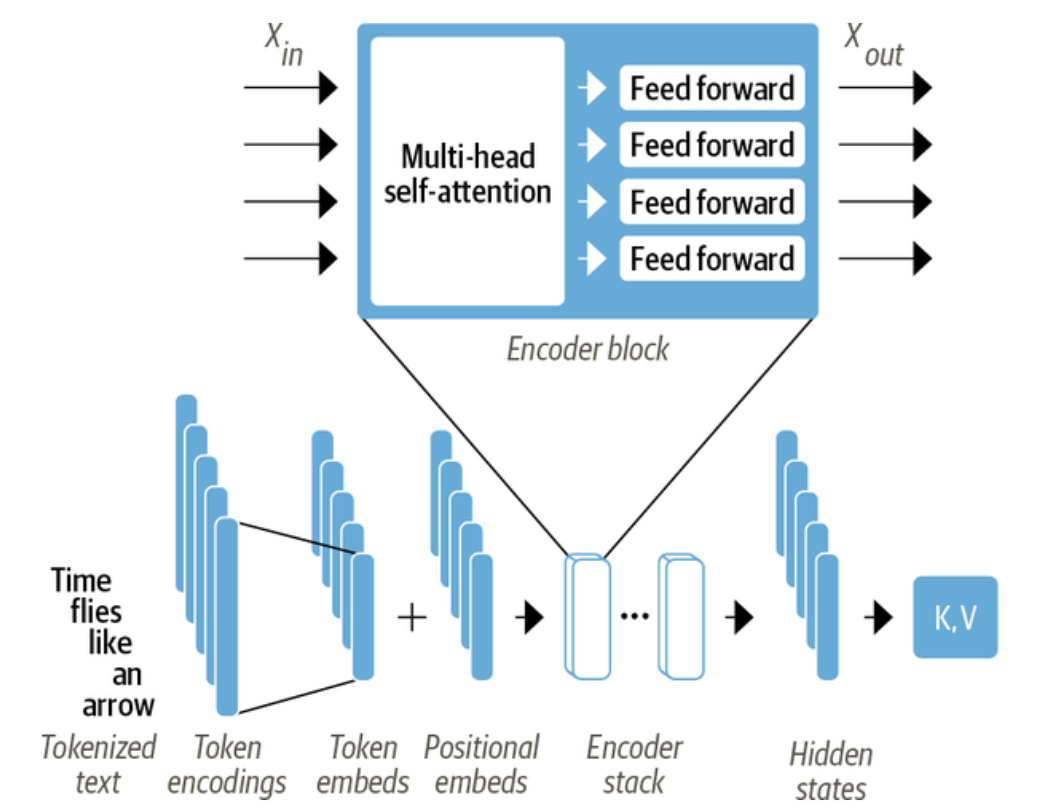 Transformer的编码器由许多编码器层相互堆叠而成。如图2所示,每个编码器层接收一系列嵌入,然后通过多头自注意力层和全连接前馈层进行馈送处理。但要想真正理解Transformer的工作原理,还需要更深入地研究它的构建模块: