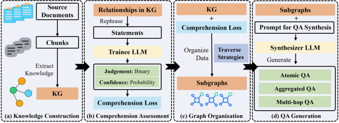 该模型首先将原始文档分割成语义连贯的小片段,接着使用大模型从片段中识别和提取实体及其关系,最后将不同片段中的相同实体或关系的描述自动合并形成知识图谱。