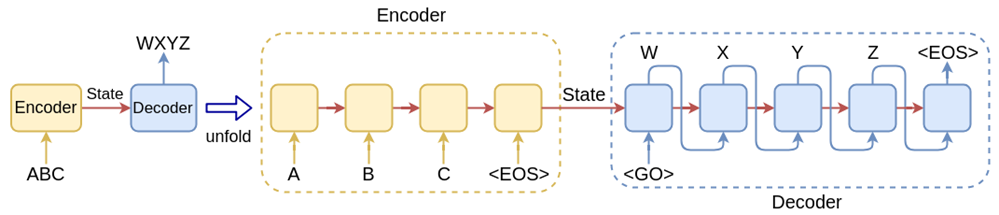 在 2014 年,Google 的论文《Sequence to Sequence Learning with Neural Networks》和 Cho 等人的论文《Learning Phrase Representations using RNN Encoder–Decoder for Statistical Machine Translation》分别提出了这种结构(前者使用 LSTM,后者使用 GRU)。