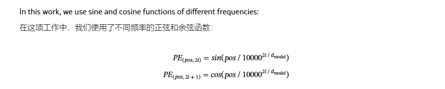 在论文中,位置编码不是训练出来的,而是通过正弦和余弦函数直接计算:
