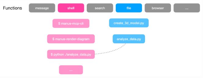 - 函数调用层:仅保留不到20个“原子函数”,如shell(执行终端命令)、text editor(读写文件)、search(搜索)等。这些函数功能通用,能覆盖绝大多数任务需求。