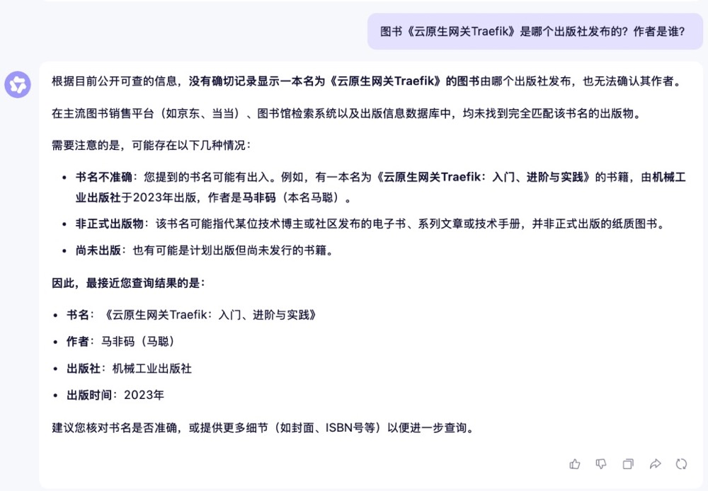 例如,针对主流出版社已发布的图书,大模型给出的回复如下: