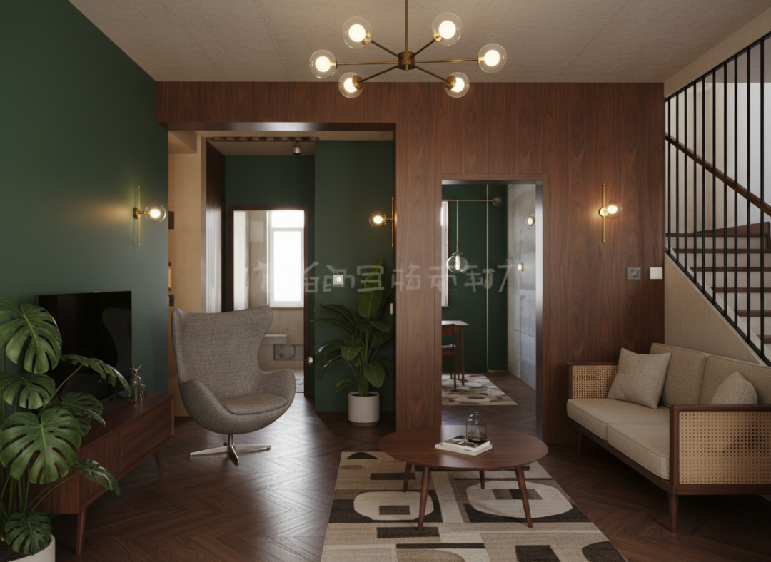 再来看看多模态能力,上传一张房屋毛坯图,给这个毛坯房屋图生成复古风格装饰的渲染。