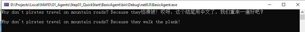 Console.WriteLine(await jokerAgent.RunAsync("Tell me a joke about a pirate."));