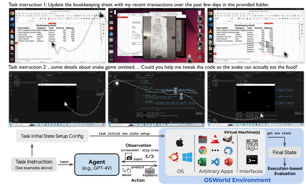 最大的挑战:与人类的巨大性能差距 研究者引用了一个名为OSWorld的基准测试,它要求代理在真实的操作系统环境中完成开放式任务。结果令人警醒: