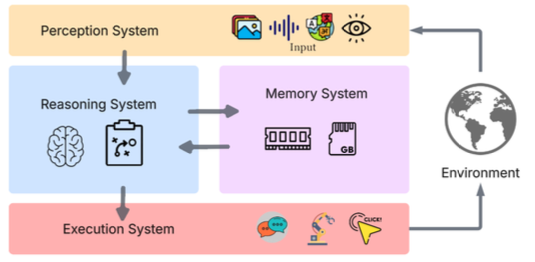 - 功能:这是代理的“手臂”。它负责将“大脑”(推理系统)的抽象决策,转化为对环境产生影响的具体行动。这可以是通过调用API,也可以是生成代码,甚至是控制鼠标和键盘。