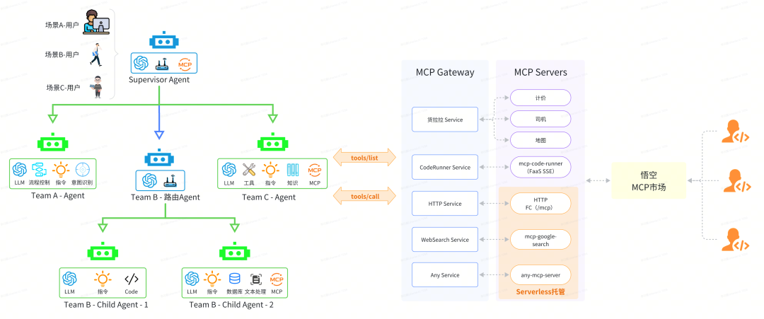 这里我们基于悟空 Supervisor 模式的 Multi Agent 使用场景,探寻货拉拉 AI Agent + MCP 的交互方式:
