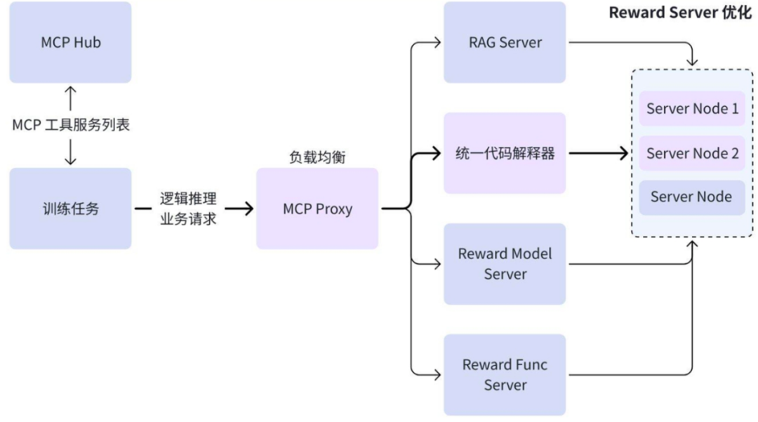 训练过程中,理想团队在智能体强化阶段的Reward 模块优化中使用了MCP统管工具服务,如使用MCP Hub为训练任务和业务请求提供可调用的工具资源目录。