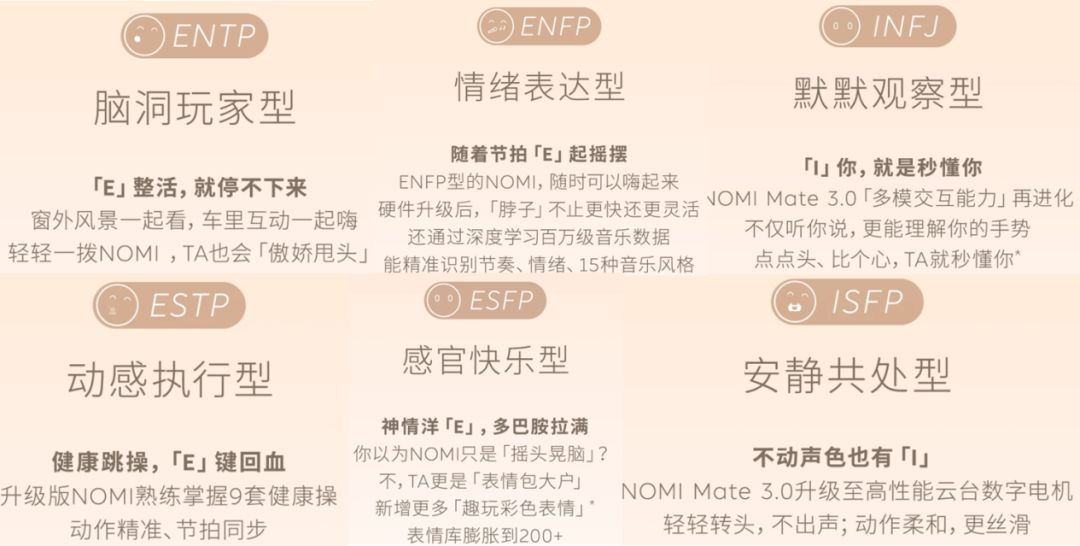 以提供“情绪共鸣”阶段为例,头部玩家如蔚来的“Nomi”。