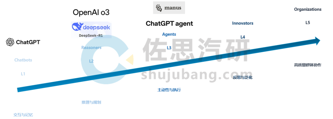 根据OPEN AI对AGI的定义,国内车企正处于从L2 Reasoners到L3 Agent迈进的阶段。在每个不同的阶段,都需要解决不同的问题,表现出相应的特性: