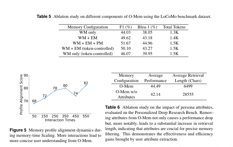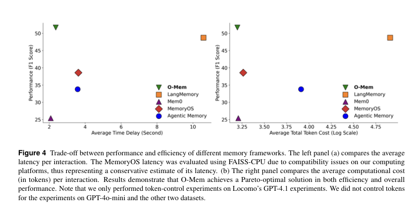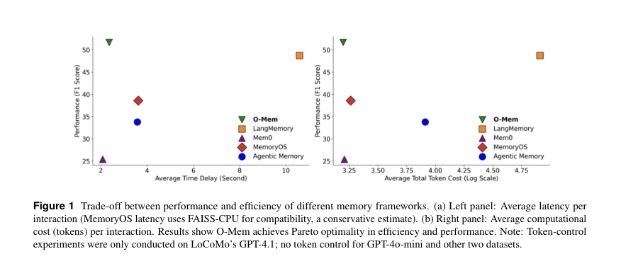 | O-Mem | 51.67 | 1.5K (减少 94%) | - | 2.4 (减少 80%) |