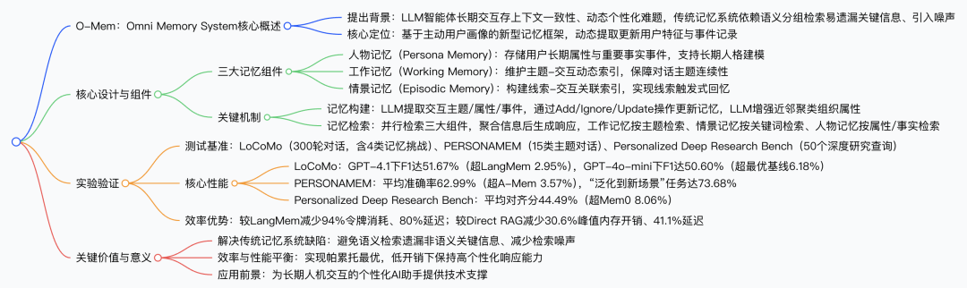 答案:O-Mem 的核心差异化优势体现在设计逻辑和检索机制两方面: