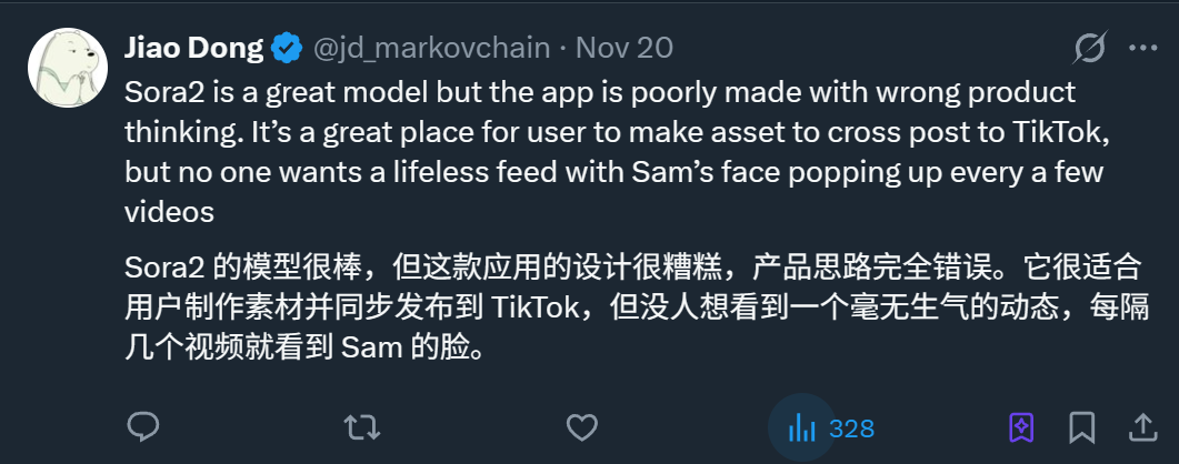 潜台词就是,即使打造出了Sora APP这样一款强大的应用,一些后续运营对OpenAI来说仍是不小的挑战,何况这种短视频产品对运营的依赖更重。