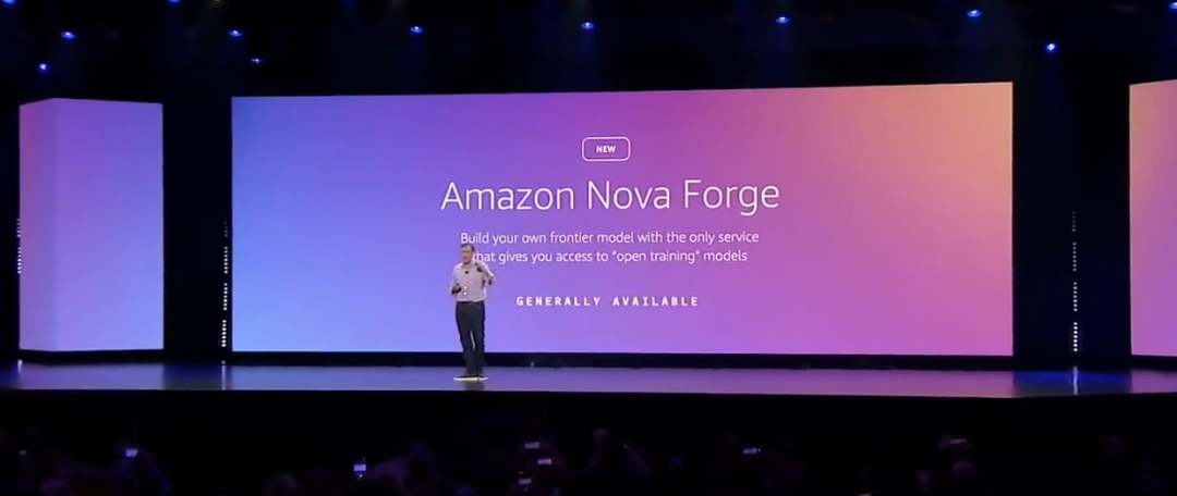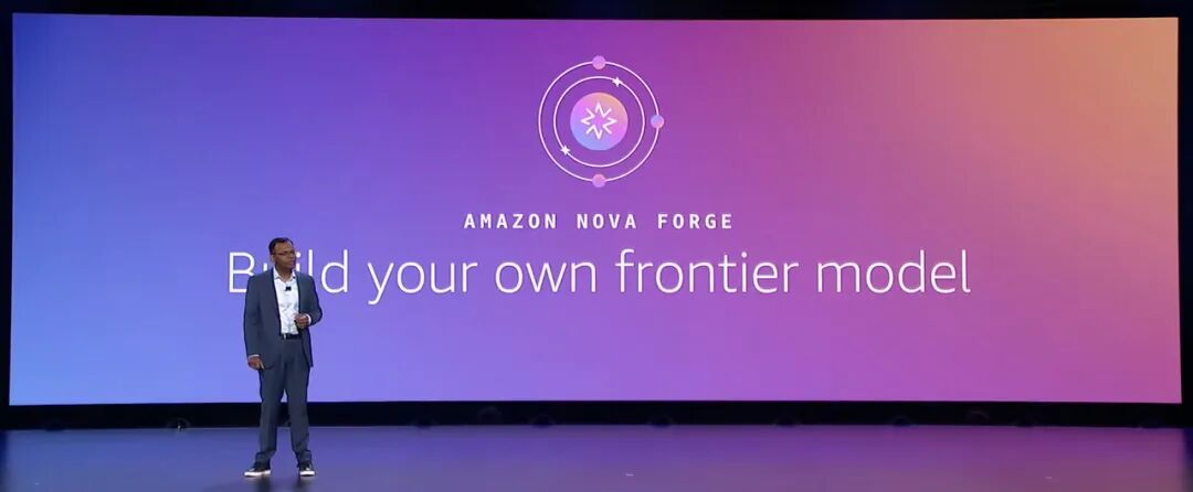 第三是数据。亚马逊云科技推出的全新服务 Amazon Nova Forge,提出了开放训练模型的概念。