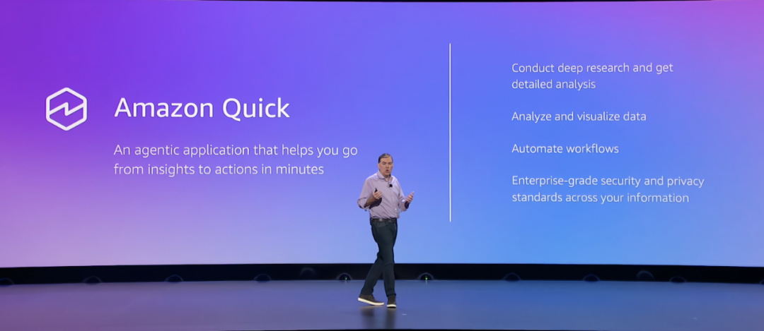 亚马逊云科技提出,要更快地把 Agent 加入到日常工作中来。Amazon Quick 作为一款面向企业的智能 Agent 应用,不仅能够帮助用户进行深度分析、数据可视化和工作流自动化,还通过企业级的安全与隐私标准确保信息的可靠性与合规性。