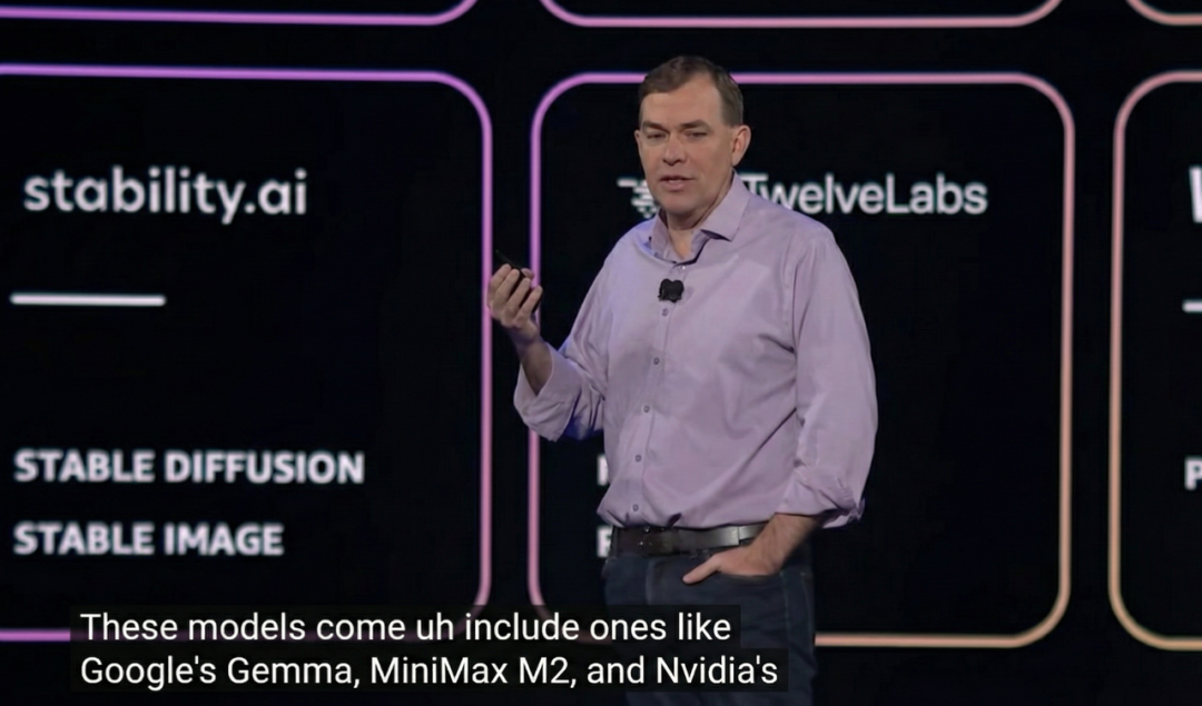 就在以 Agentic AI 为核心主题的 AWS re:Invent 2025 大会上,AWS CEO Matt Garman 宣布旗下模型库 Amazon Bedrock 迎来多个「新成员」,其中就包括了国产开源模型代表 MiniMax M2。