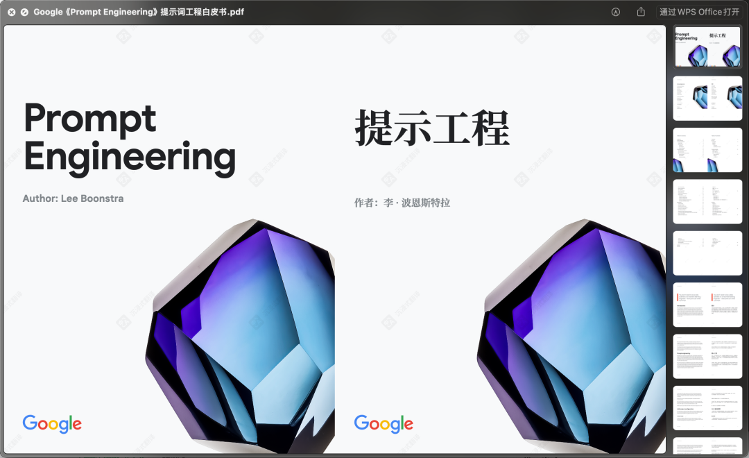 Google 今年发布了一份长达 65页 的白皮书,详细探讨了提示工程(Prompt Engineering),介绍了如何通过设计和优化提示词来引导AI大语言模型(LLM)生成准确的输出。