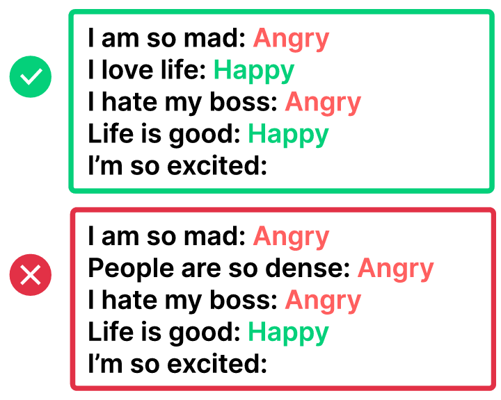 当然 few-shot 也不能乱写,需要注意下面几个方面: